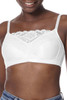 "Ideal for women with high scarring or to wear with lower necklines. This camisole bra with a stretchy lace insert, has thin, adjustable straps and a double hook fastener with three-wau adjustment and a treble hook fastener on all D and DD cups."