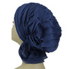 Teal Blue Ruffle Chemo Beanie®. The unique elastic design stretches for a comfortable and easy fit. Slips on and off with ease; No tying necessary. Designed by cancer survivors to provide full coverage of hair loss as an alternative to other hats, turbans and wigs.