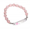 Very Pretty Pink Beaded bracelet featuring a stainless steel tag with Pink ribbon and pink medical symbol. The beads are stranded on an elastic strand for ease of taking on and off.