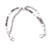 Very pretty, petite beaded double strand interchangeable medical ID bracelet. 2 bracelets in one! Beads are stranded on a stretchable strand, and has stainless steel clasps on both ends. One Strand features smaller beads with pearl like larger accent beads and 1 strand features silver beads. Please note Image may appear lighter than actual bracelet.